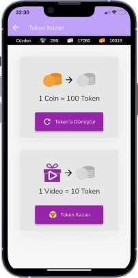Videoyu başlatmak için "Token Kazan" düğmesine bas. Reklamı sonuna kadar izlemeyi unutma.