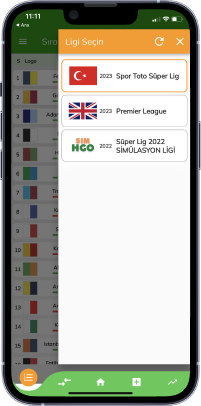 Lig değiştirmek için Sıralamalar sayfasından sağ üst köşedeki top ikonuna basabilirsin.