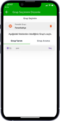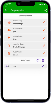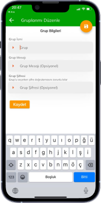 Oluşturduğun grubun ismini ve mesajını belirleyebilir ve şifre ile girilebilen gruplar oluşturarak özel yarışmalar oluşturabilirsin.