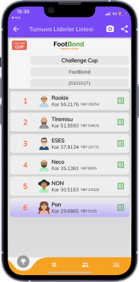 Katıldığın turnuvalarda sonuçları bu alandan görebilirsin. Kupa ikonuna tıkla, turnuva kazananlarının gör. Kazanan portföyleri incele, kendininkiyle kıyasla.