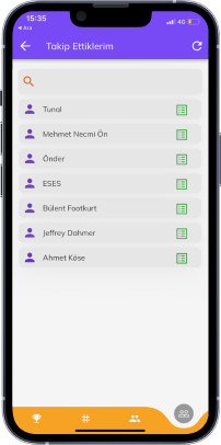 Takip listendeki kişilerin performansını izlemek için listeleme butonuna tıkla.