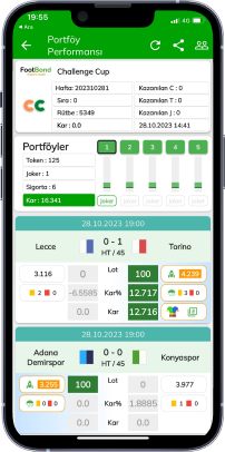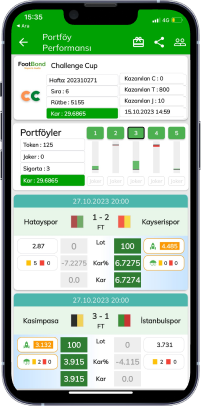 Bu alanda maçlar oynanırken portföylerin getirisini takip etmek için portföyünü seç. Maç skorlarına göre güncel getirini takip et.