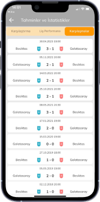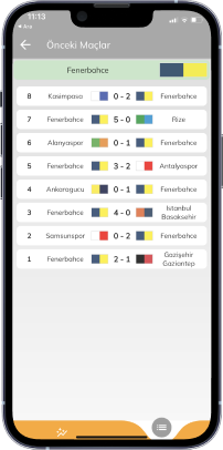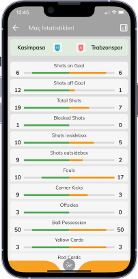 Maçlara dokunarak maç hakkındaki istatistiklere ulaşabilirsin.
