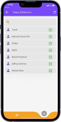 Takip listendeki kişilerin portföy performanslarını görmek için listeleme ikonuna tıkla.