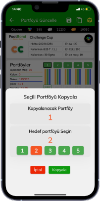 Turnuva başına 5 portföy yapma şansın var. İstersen yapmış olduğun bir portföyün içindeyken kopyalama ikonunu seçip hedef portföye kopyalama yapabilirsin.