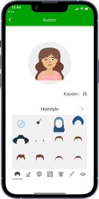 Farklı kategorilerdeki özellikleri seçerek avatarını oluşturabilirsin.