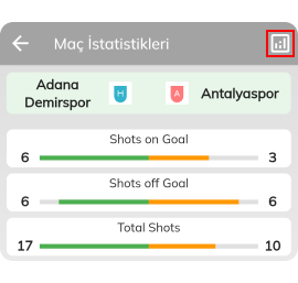 Maç İstatistikleri sayfasında sağ üst köşedeki Analiz ikonuna tıklayarak.