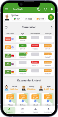 - Weekly, Challenge CUP ve Eğitim Turnuva yarışmaları Coin, Token ve Joker kazandırır.