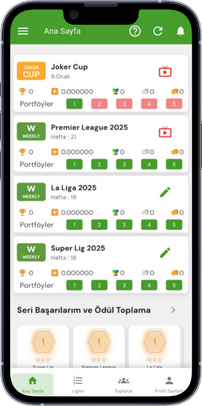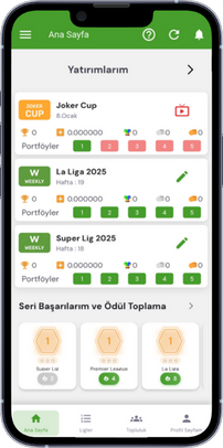 Oyuncular, her bir yarışma içinde belirlenmiş maçlarla, 5’er yatırım portföyü hazırlayabilir.