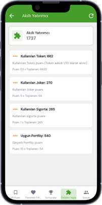 Roket ve Sigorta güçlendirmeleri için Token kullanmalısın. Her bir portföy için bir Joker kullanma hakkın var.