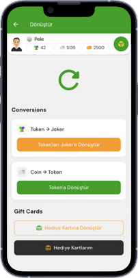 Oyuncu kazandığı Coinleri isterse oyun içinde dönüştürüp Token olarak da kullanabilir. 1 Coin 100 Token değerindedir.